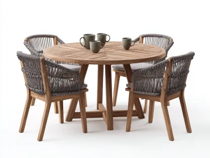Este conjunto de comedor de jardín está diseñado para crear un espacio acogedor al aire libre. Su mesa redonda y las sillas con respaldo trenzado ofrecen un ambiente relajado ideal para disfrutar de comidas, reuniones o momentos de descanso en la terraza, el patio o el jardín.