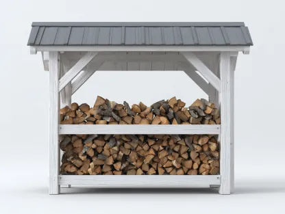 La estructura elevada permite mantener la leña separada del suelo para evitar la humedad. Su diseño espacioso facilita el acceso y la organización de los troncos, manteniendo el área exterior ordenada.